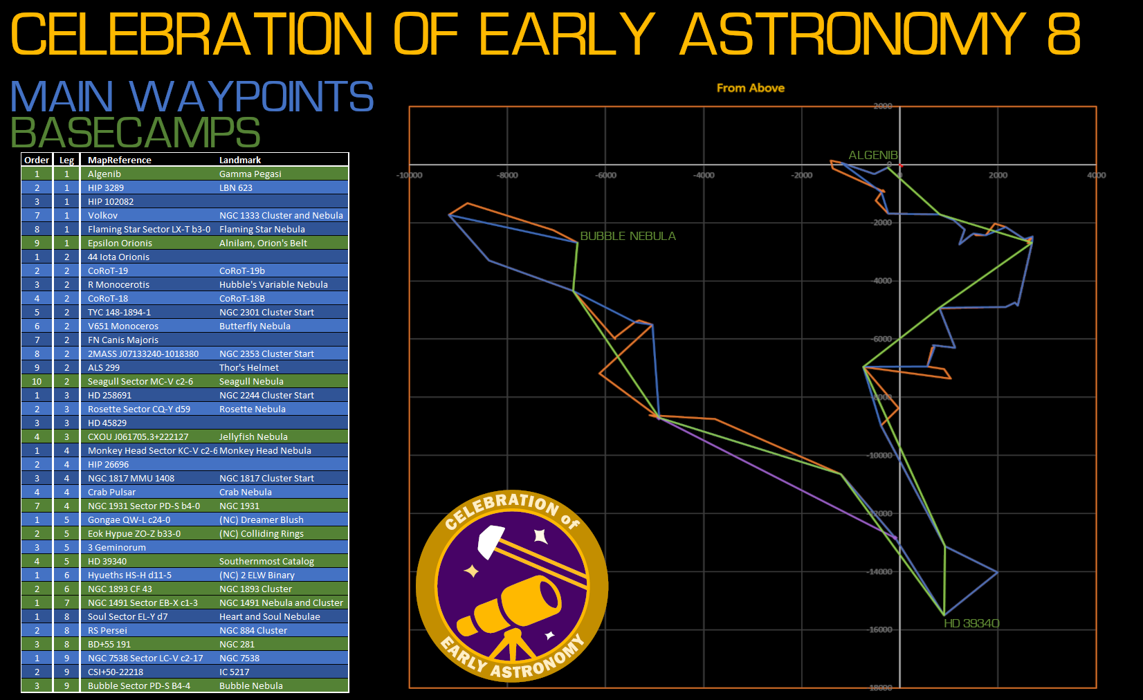 For Leg 3 of Celebration of Early Astronomy 7 we are moving over to the Veil Nebula West with two waypoints along the way to allow for a more freeform exploration leg for leg 3 before we begin with the longer two week legs.